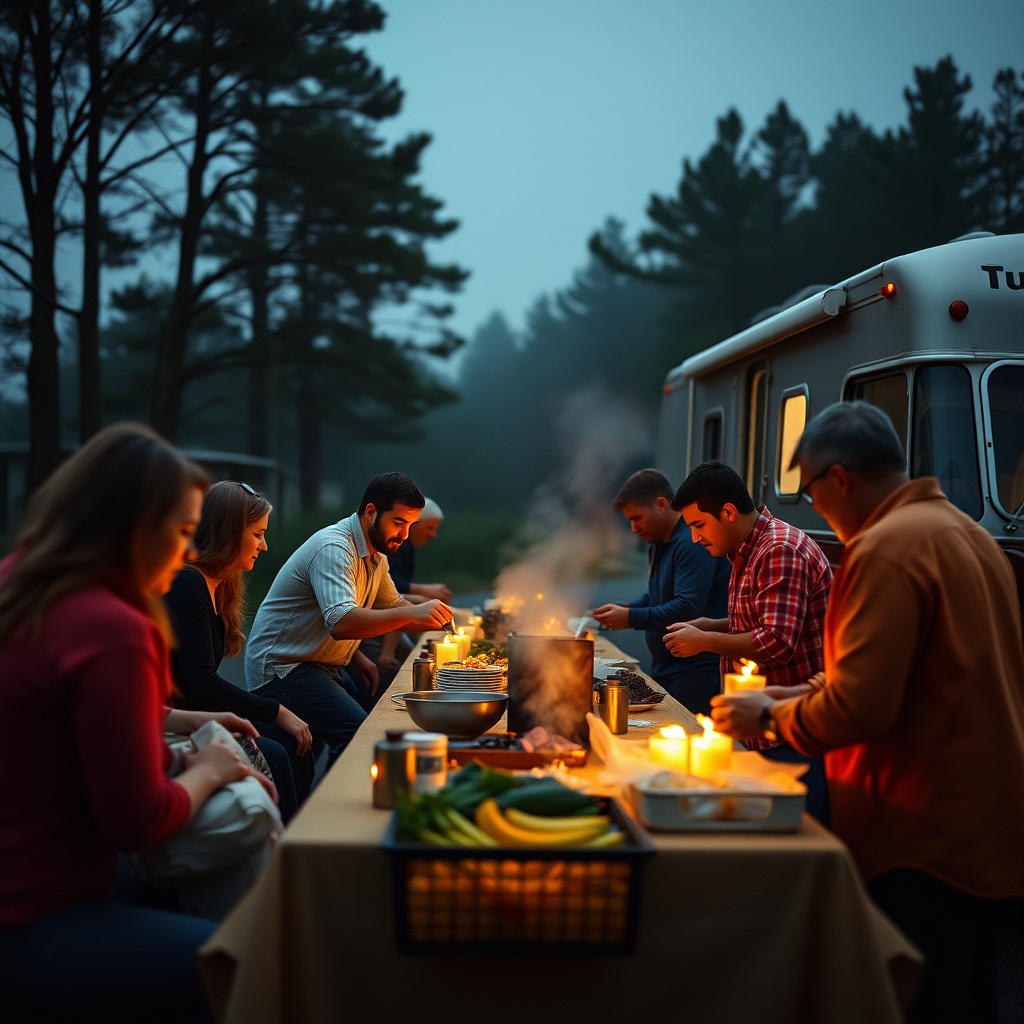 Hands of Hope Disaster Relief Team cooking while they were delivering supplies in Kerrville, Tx. after the floods of 2025.